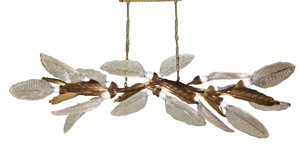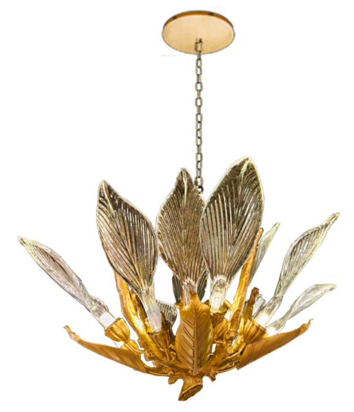 FINISH: GOLD, HAND MADE GLASS: CLEAR, GOLD, BLUE