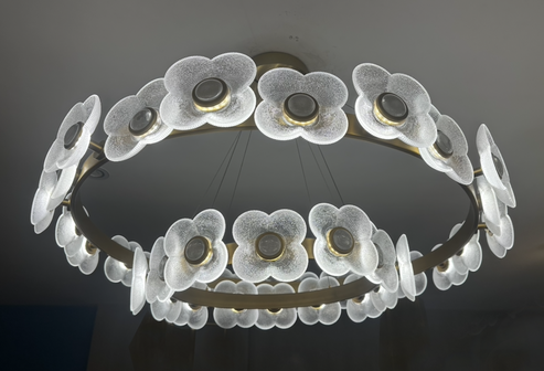 LED, FINISH: BRUSHED GOLD WITH LED PHILOPS CHIP STRIP, CLEAR K9 CRYSTAL WITH MEANWEKK DRIVER